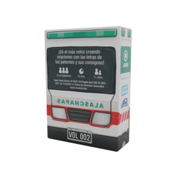En A las chapas, competirás por ser el más veloz creando enunciados con las letras de las patentes para obtener cartas de Chapas. Al final, se sumarán los valores de las cartas conseguidas. ¡Quién tenga más puntos ganará el juego!