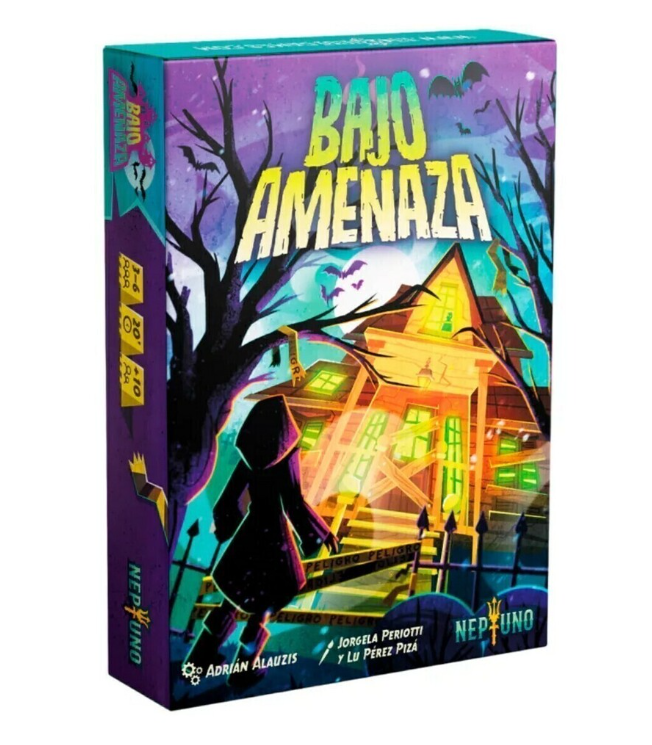 Bajo Amenaza es un juego cooperativo, de suspenso y de construcción grupal de mazo para tentar la suerte, donde debemos encontrar la salida antes que el asesino nos elimine uno a uno.