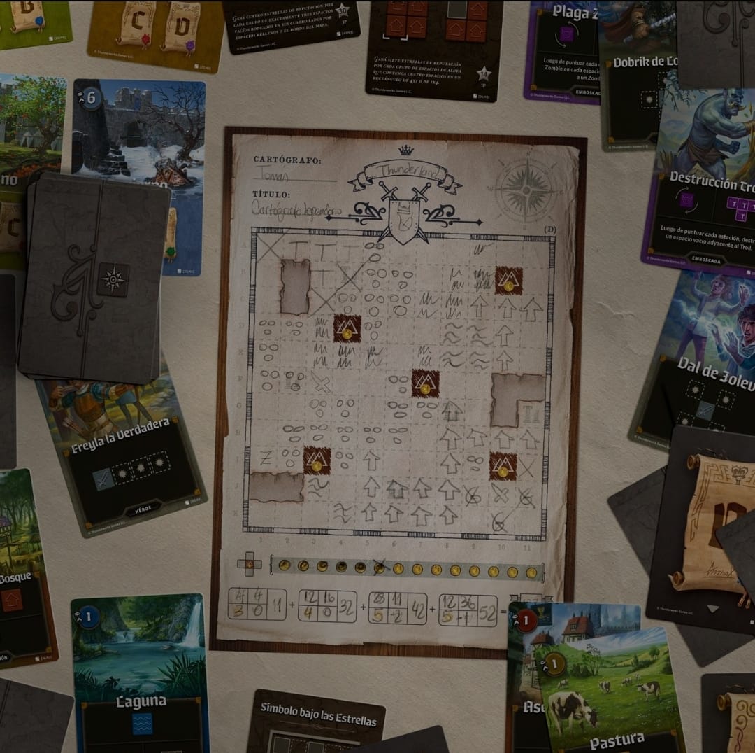 - ¿Qué es "roll & write"? Sale una figura en una carta, y TODOS los jugadores tienen que intentar ubicarla, dibujándola, en sus mapas. Como un Tetris apaisado en el que tenés un poco más de tiempo para pensar (hasta que los demás jugadores te miren impacientes y amenazantes, al menos).