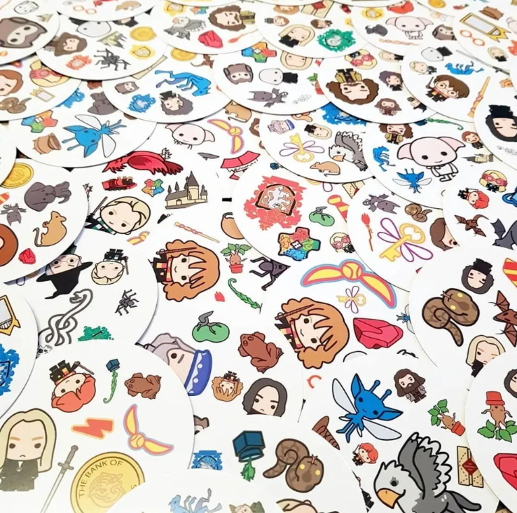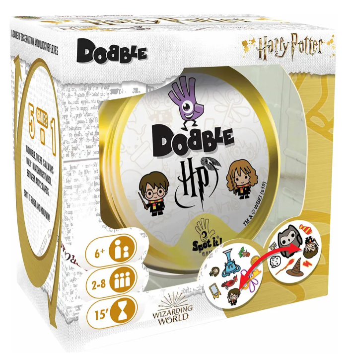 Dobble harry potter es un juego en el tendrás que descubrir qué personaje, objeto, bestia fantástica o símbolo de las historias de hogwarts se repite entre dos cartas