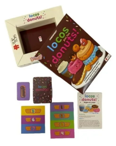 Locos por las Donuts es un juego de cartas de ritmo rápido para toda la familia con solo una pizca de estrategia. Sé más astuto que tus oponentes y recoge donas recién salidas del horno para ganar puntos. Pero cuidado, si dos jugadores van tras el mismo donut, ¡Nadie lo consigue!