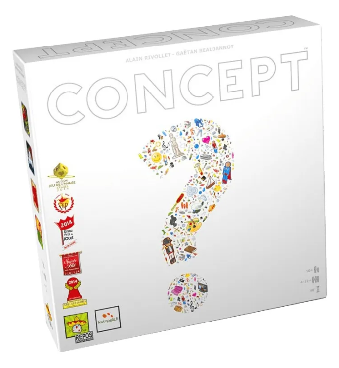 En Concept, tu objetivo es adivinar palabras a través de la asociación de iconos. Un equipo de dos jugadores – que estarán sentados el uno junto al otro – elige una palabra o frase que los demás jugadores deben adivinar. Actuando juntos, colocarán piezas sobre los iconos disponibles en el tablero de juego (con más o menos juicio). El primer jugador que descubra la palabra o frase recibirá 2 puntos y el equipo activo recibe puntos también. Al final de la partida, el jugador que más puntos tenga será el ganador.