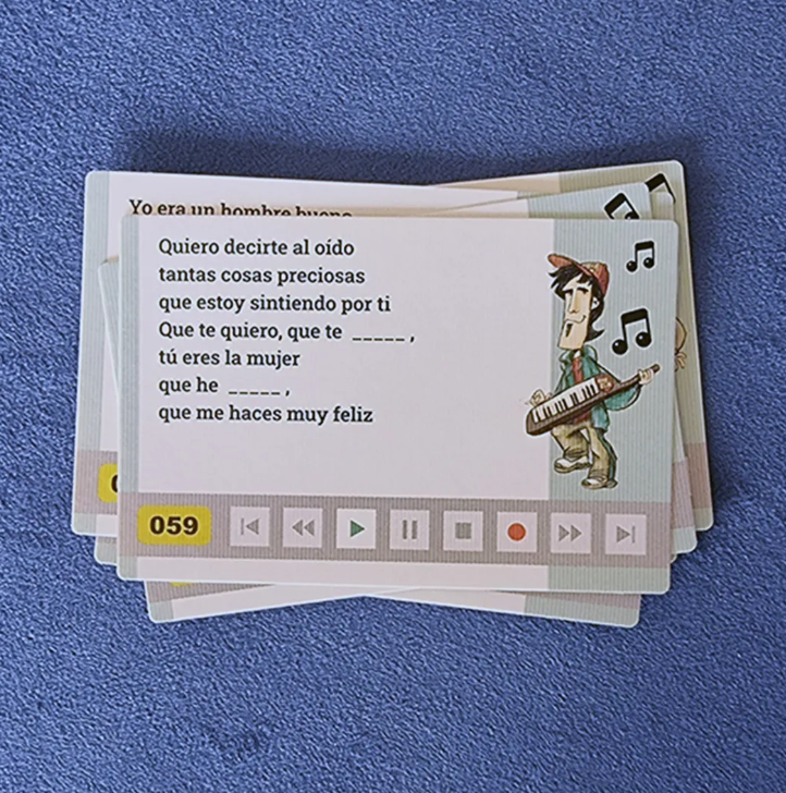 Se puede jugar con el juego original, o individualmente. Cantá y adiviná las palabras que faltan, respondé las preguntas y ¡sé el primero en llegar a doce tarjetas!