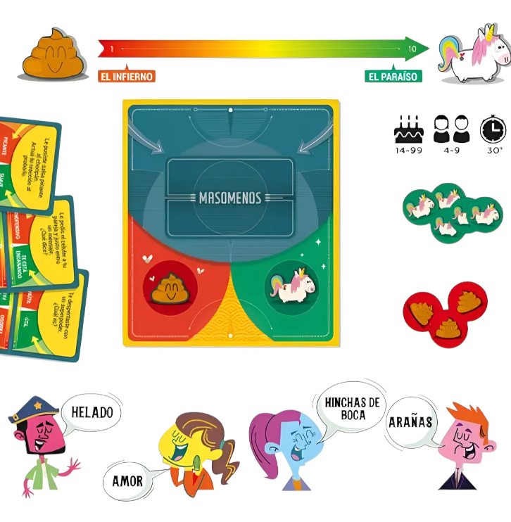 Es un juego ideal para grupos grandes, donde el objetivo es debatir y organizar las respuestas de cada jugador, desde la más tranquila hasta la más intensa, sobre consignas divertidamente absurdas propuestas por cada uno.