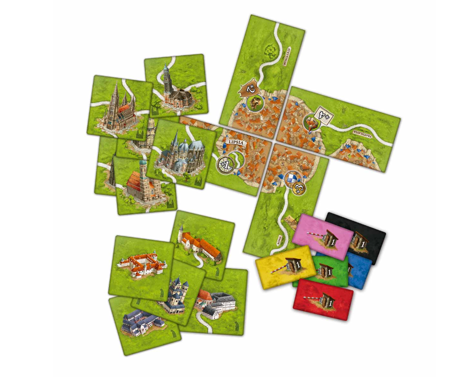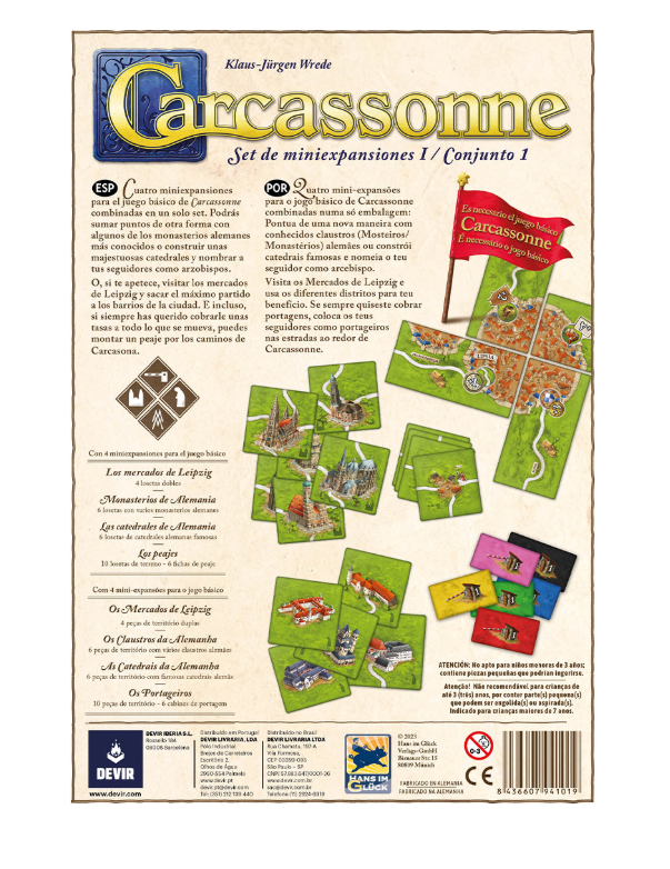 ¡Amplía tu colección de Carcassonne y dale un toque germánico con este set de miniexpansiones! Se trata de 4 nuevos módulos para el juego básico: los mercados de Leipzig, monasterios de Alemania, las catedrales de Alemania y los peajes. Nuevos componentes que darán un giro táctico al clásico título de colocación de losetas.