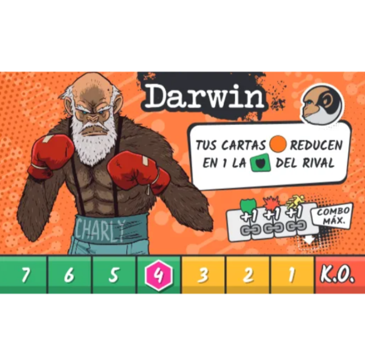 El feroz Darwin se enfrenta a la elegante Curie en un duelo rápido y asimétrico, en el que ambos deben aprovechar sus cartas y encontrar el momento perfecto para ejecutar combos y habilidades especiales, como en los videojuegos de pelea que tanto amamos