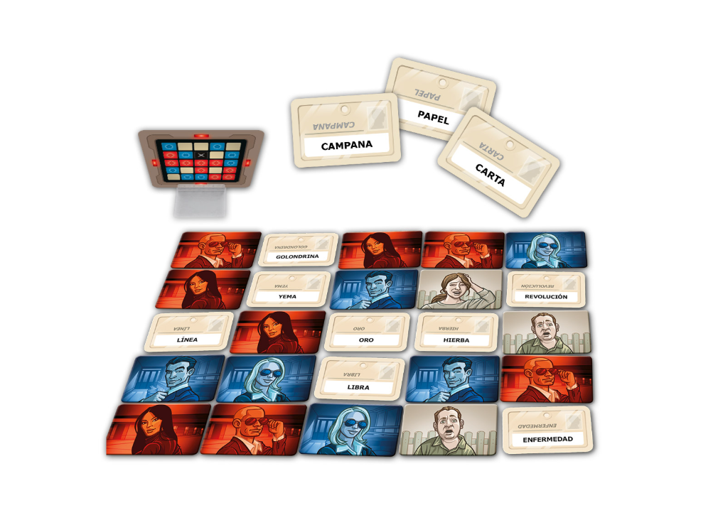 Los dos jefes de espías conocen la identidad secreta de cada agente, pero sus compañeros de equipo sólo conocen a los agentes por su nombre en clave. Los equipos competirán para ver quién consigue contactar primero con todos sus agentes. Cada jefe de espías dirá en su turno una pista compuesta por una sola palabra que puede referirse a varias de las palabras que hay en el tablero. Sus compañeros de equipo intentarán adivinar esas palabras evitando señalar las palabras del equipo rival y sin que nadie encuentre al asesino.
