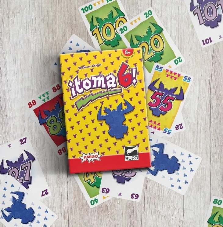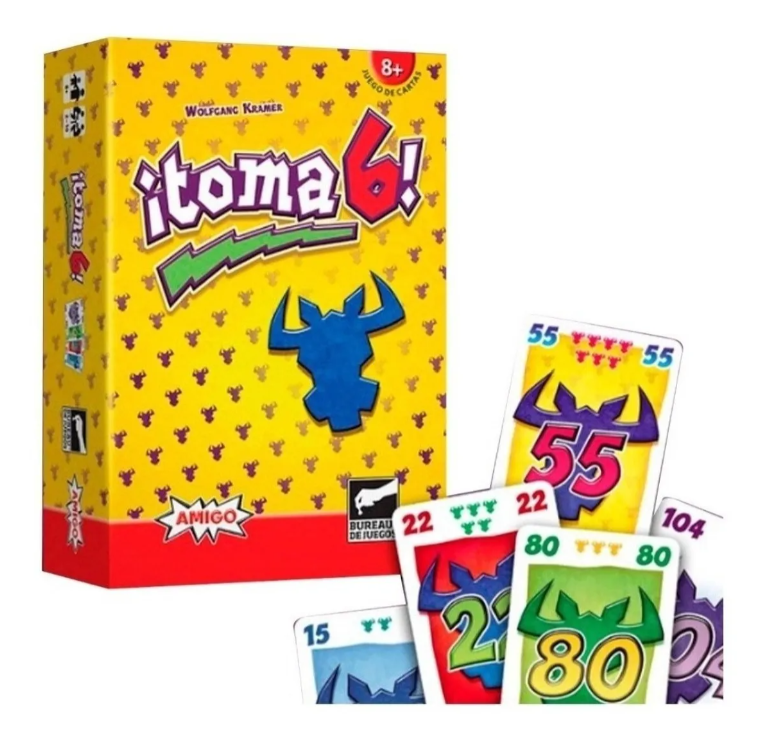 ¡Toma 6! es un juego rápido y divertido en el que tenes que intentar desprenderte de tus cartas sin tener que levantar cartas de la mesa.