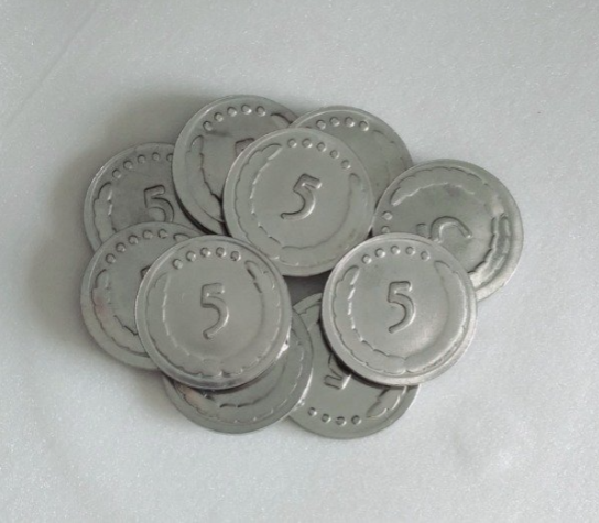 Monedas metálicas linea "estándar" para mejorar componentes en juegos de mesa 27mm de diámetro y 2mm de espesor.