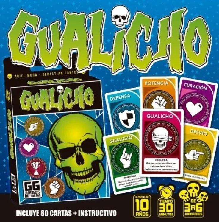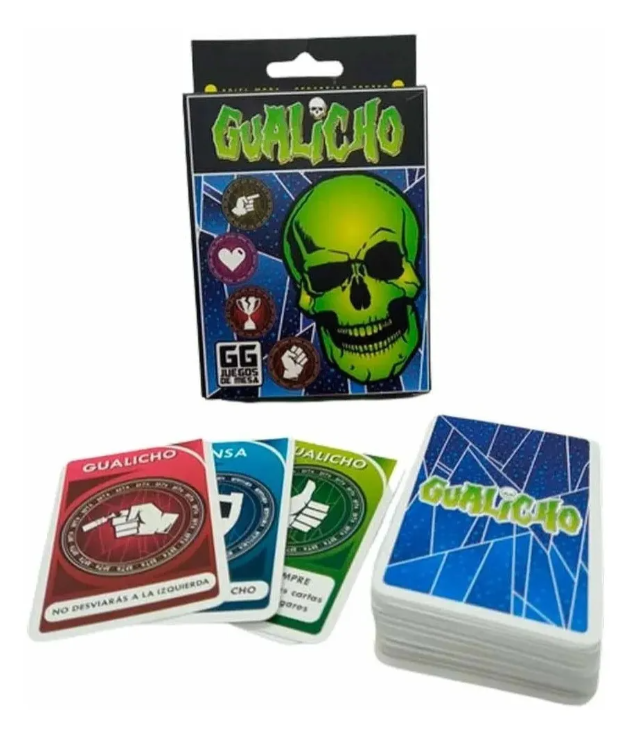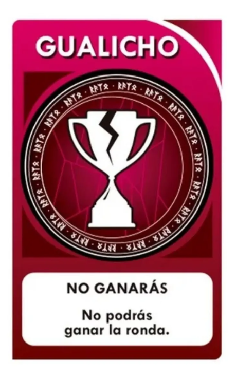 Las cartas son hechizos que le tiras a los demás jugadores, estos gualichos son prendas físicas que se pueden complicar, como por ejemplo no te podes reir, o tenes que jugar sin tocar las cartas con los dedos pulgares; si rompes con estas prendas levantas cartas.