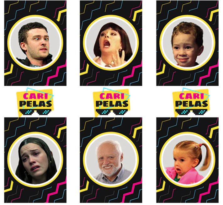 En Caripelas vas a tener que imitar e intentar adivinar otras imitaciones de los memes más divertidos y recordados. Podemos encontrar algunos como "Bad luck Brian", "¡Ya wey!" y otros de personajes famosos captados en el momento justo. Con cada acierto se repartirán fichas de Martin Fierro, para así determinar quién gana la partida.
