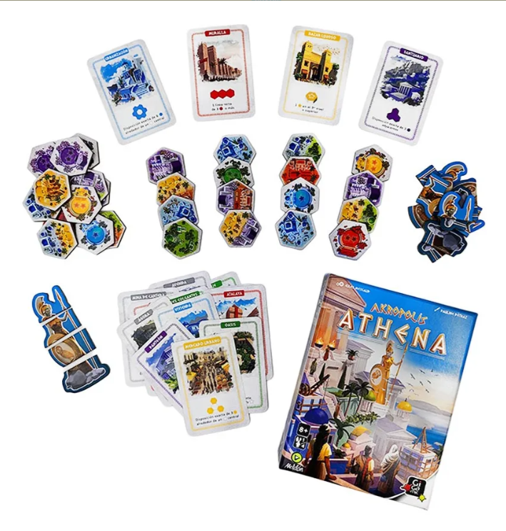 ¡Llega la expansión que potencia tu ciudad al máximo! Akrópolis Athena suma nuevas losetas y reglas que elevan la estrategia y la competitividad del juego base. Ideal para quienes ya disfrutan Akrópolis y quieren llevar la experiencia un paso más allá.