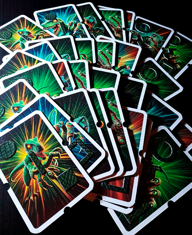 En cada ronda se lanzan tres fichas táctiles que indican las figuras a encontrar. Sin mirar, cada jugador explora su mazo en relieve hasta dar con las cartas correctas.