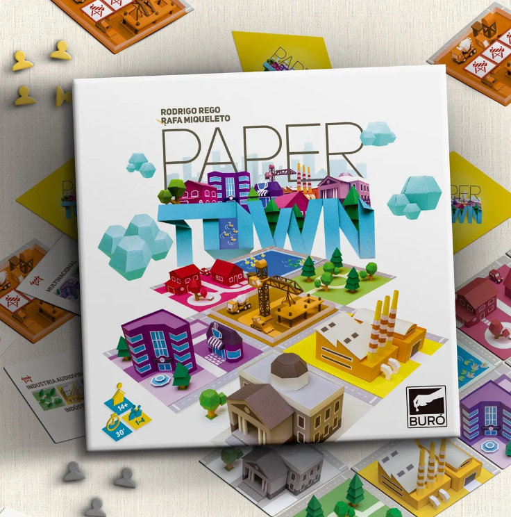 Papertown es un juego de terrenos ágil en el que en cada turno tratás de cumplir tus objetivos colocando distritos comerciales, residenciales e industriales, además de parques y edificios públicos.