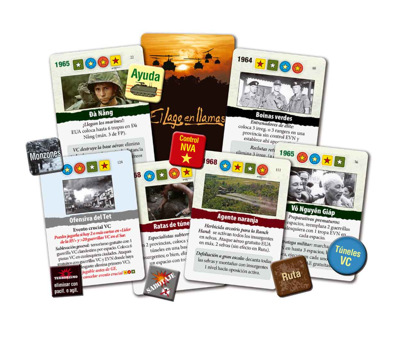 Uno de los puntos más calientes de la Guerra Fría ocurrió en el sudeste asiático a finales de los años sesenta del siglo pasado, como consecuencia del proceso de descolonización en la Indochina francesa. Vietnam se dividió en dos países (uno procomunista, al norte, y otro afín a las potencias occidentales, al sur). Ante el temor de que el sur cayera bajo influencia comunista, Estados Unidos destinó ingentes esfuerzos militares para armar el país, enzarzándose en un conflicto que marcó a varias generaciones. La guerra del Vietnam ha sido tratada en el cine (Apocalypse Now, Platoon, Full metal jacket), la literatura y también en el mundo de los juegos de mesa.