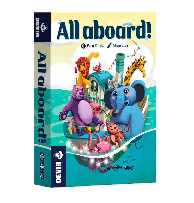 En All Aboard! deberás llevar a tu grupo de animales a un lugar seguro en las diferentes embarcaciones, pero ten cuidado de no exceder su capacidad, o de lo contrario se hundirán. Diseñado por Paco Yánez e ilustrado por Monsuros, este divertido juego de cartas se puede jugar en pareja o en grupos de hasta 5 jugadores, a partir de 7 años, en partidas de unos 20 minutos de duración.