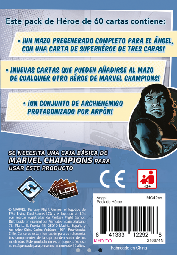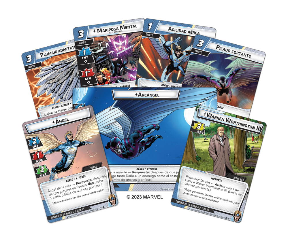 • ¡Un mazo pregenerado completo para el Ángel, con una carta de superhéroe de tres caras!