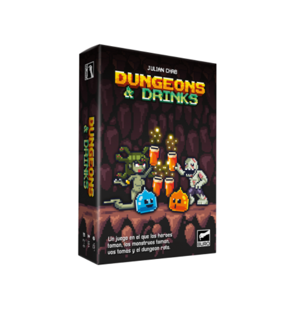 En Dungeons & Drinks sos un héroe pasado de copas, que entra junto con sus amigos a un dungeon lleno de peligros y monstruos que no molestaban a nadie. En cada partida los jugadores compiten para ver quien es el mejor tomando y matando monstruos indefensos. Algo que sería muy simple si los demás jugadores no estuvieran molestándote para impedir que cumplas tus planes. Por las cartas de Borrachera, vas a terminar con el pie arriba de la mesa, hablando con acento italiando, jugando con los codos pegados y mucho más. Por último (pero no menos importante!) Dungeons & Drinks es el primer juego de autor argentino editado y desarrollado en simultáneo entre Buró Argentina y Buró Brasil :)