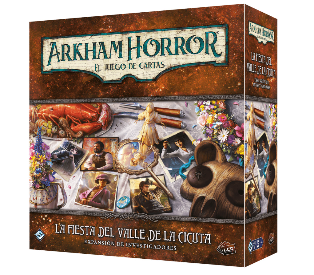 Ya sea desde las profundidades de la tierra o del infinito cosmos, pueden aparecer terrores desconocidos sin ninguna advertencia. Horrores innombrables vienen en todas las formas y tamaños, y su amenaza suele pasar desapercibidas hasta que ya es muy tarde. Todo está en manos de algunos valientes de gran intelecto y con instintos de sobrevivencia. La expansión de investigadores La fiesta del Valle de la Cicuta presenta cinco nuevos investigadores para Arkham Horror LCG y agrega nuevas cartas de jugador y diferentes opciones para armar tu mazo, incluyendo nuevas cartas que usan fichas de bendición y maldición. Toma el lugar del manitas Wilson Rcihards y utiliza la mejor herramienta o el de la científica Kate Winthrop y construye el mejor laboratorio el de la condesa Alessandra Zorzi y utiliza la conversación para salir ilesa del peligroo el del folclorista K?haku Narukami y trae equilibrio al caos o toma el lugar del granjero Hank Samson y protege a los demás del peligro.