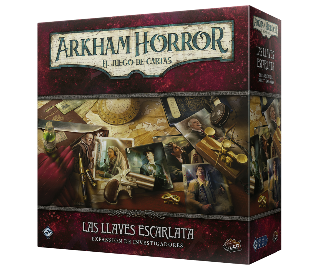 “Hay cosas referentes al mundo y al universo que es mejor que la mayoría de la gente no sepa...” –HP Lovecraft para Hazel Heald, “Más allá de los eones”Existe una miríada de dimensiones superpuestas como capas sobre la nuestra. A veces, cuando la barrera que separa esas capas es delgada, hay cosas que se cuelan desde el inmenso más allá. Quienes cuentan con conocimientos malditos son los encargados de evitar que esas entidades hagan pedazos de nuestra dimensión. La expansión de investigadores Las llaves escarlata presenta 6 investigadores nuevos y multitud de nuevas cartas de Jugador y opciones para el juego, incluidas nuevas cartas personalizables que se pueden mejorar el gusto del investigador. Apoya a tus compañeros como Carson Sinclair, el mayordomo; diagnostica y trata dolencias como Vincent Lee, el médico; pierde a tus perseguidores como Kymani Jones, el escurridizo asesor de seguridad; aprende palabras de poder arcano como Amina Zidane, la operadora; retratas de horrores imposibles como Darrell Simmons, el fotógrafo; y organiza la fuerza especial definitiva como Charlie Kane, el político. Esta expansión se puede emplear para crear o potenciar mazos de investigador para cualquier escenario o campaña de Arkham Horror: El juego de cartas