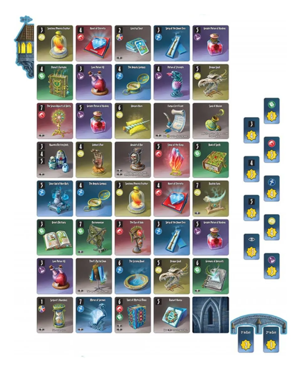El primer jugador en escapar de la torre recibe puntos extra, por lo que la partida se convierte en una carrera frenética hacia la salida, mientras intentás armar conjuntos de artículos para maximizar tu puntaje.