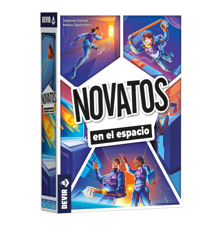 Diseñado por Johannes Krenner y Markus Slawitscheck, Novatos en el espacio permite partidas para grupos de 3 a 5 jugadores, a partir de 10 años, con una duración aproximada de 15 minutos. Esta aventura espacial cooperativa propone diferentes desafíos en varios niveles en los que los jugadores deberán trabajar juntos para resolver las tareas.