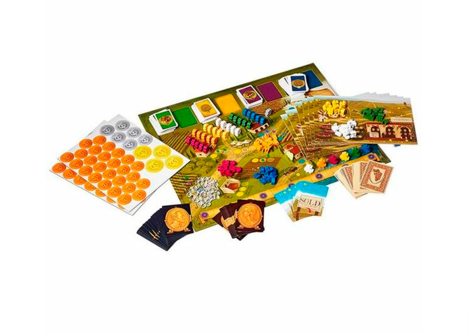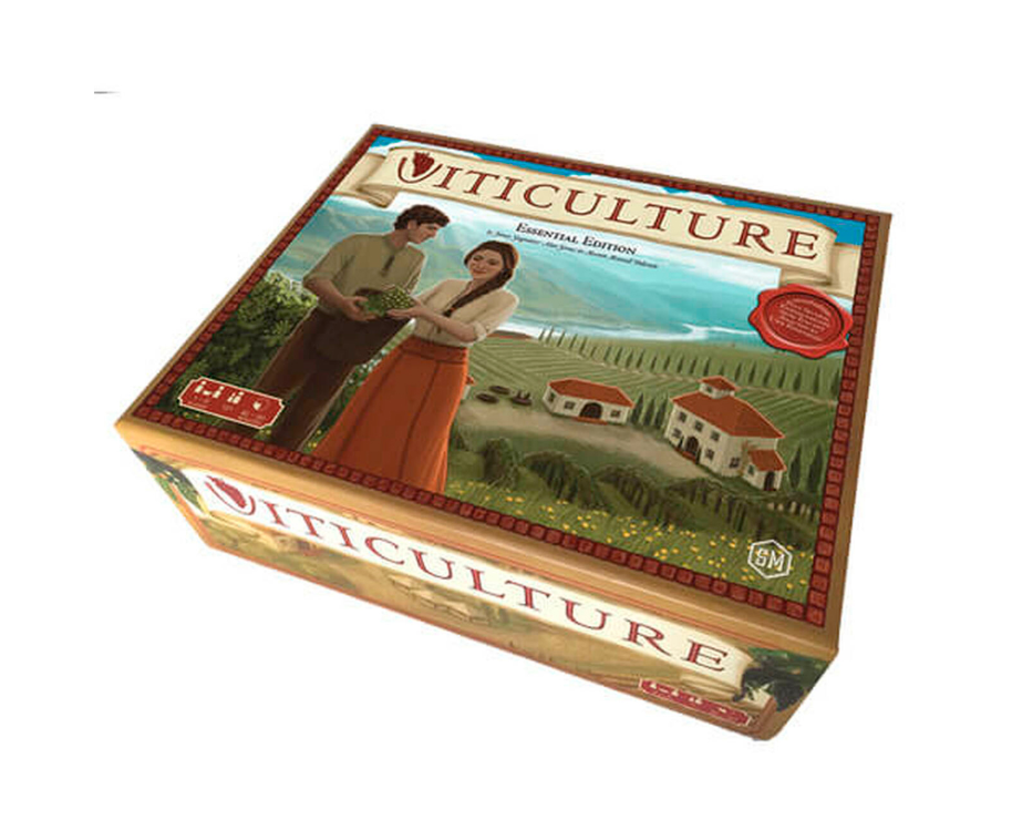 Viticulture Essential Edition incluye el juego básico de Viticulture y algunos de los módulos más populares de la expansión original de Tuscany, incluidos Mamas & Papas, Fields (anteriormente conocidos como Propiedades), Visitantes ampliados y revisados y tarjetas Automa para una variante individual, junto con con algunos cambios menores en las reglas.
