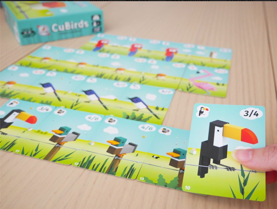Los jugadores comienzan cada ronda de Cubirds con ocho cartas de pájaro. Sobre la mesa habrá también cuatro filas de pájaros (vallas). En tu turno, colocarás una serie de pájaros iguales en el extremo de una de las vallas. Los pájaros del mismo tipo se unirán, haciendo que los que hayan sido rodeados vuelen hacia tu mano. Cuando tengas un número suficiente de pájaros iguales en tu mano, podrás bajarlos a tu zona de juego.