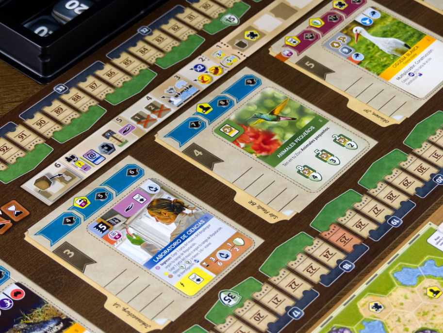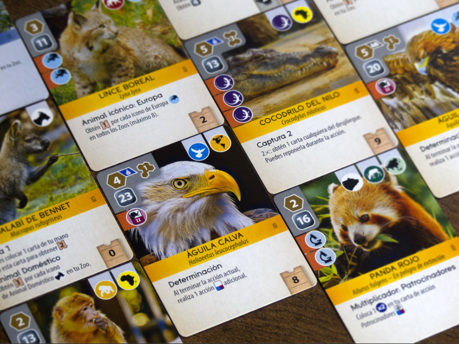 255 cartas con animales, especialistas, recintos especiales y proyectos de conservación, cada uno con una habilidad especial, son el corazón de Ark Nova. Úsalos para aumentar el atractivo y la reputación científica del zoológico y acumular puntos de conservación.