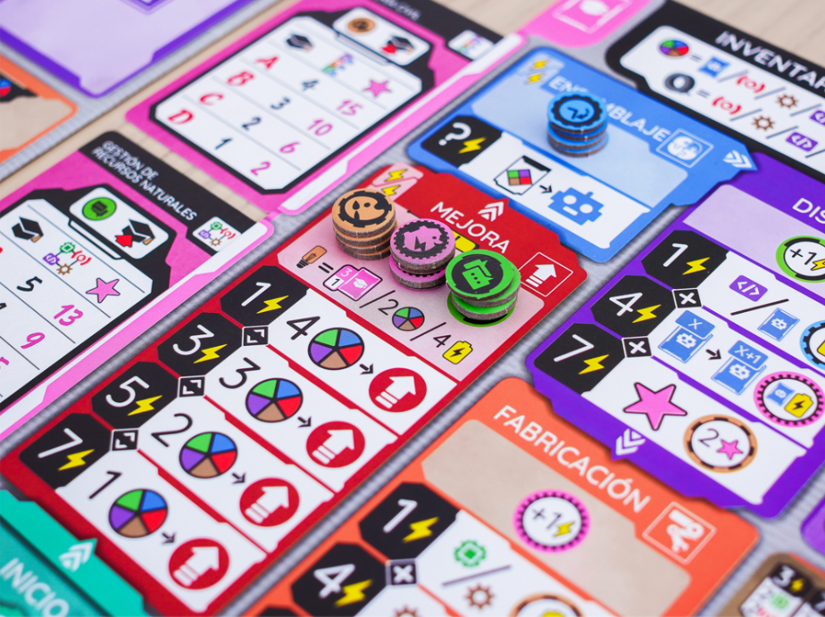 En cada ronda, los jugadores eligen de forma simultánea 2 de las 5 fases para resolverlas con distintas cantidades de Energía, pero tus elecciones pueden afectar a otros jugadores. ¡Cada elección afectará a los demás inventores!