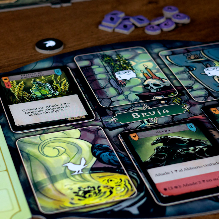 La esencia de este juego asimétrico es la lucha de la bruja contra su cazador. Mientras la bruja intenta completar su ritual, el cazador intenta encontrarla y descubrir su verdadera identidad. Cada jugador tendrá un mazo variable de 50 cartas y diferentes recursos para derrotar a su oponente. Hay muchas tácticas y estrategias, posibles y necesarias para sobrevivir en esta lucha de dos poderes. La historia ficticia de la colonia perdida de Roanoke cobra vida integrándose en los oscuros gráficos de la ilustradora Maren Gutt."