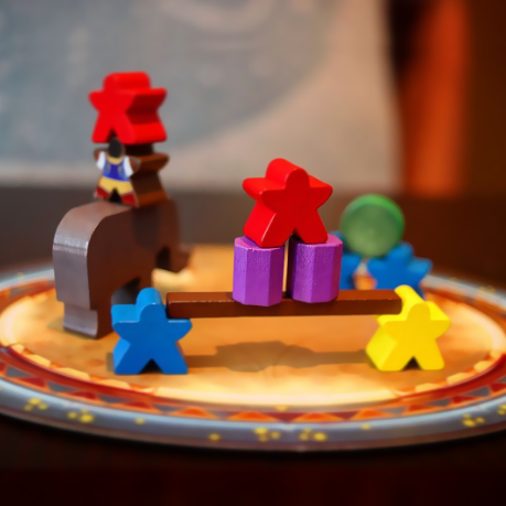 Meeple Circus es un juego donde la gracia está en hacer malabares… literalmente. Acróbatas, animales, elementos rarísimos y estrellas invitadas te obligan a armar poses imposibles para ganarte los aplausos y demostrar que tu circo es el mejor. La dinámica es simple: tres rondas para preparar y presentar tu show. Y cuando llega la función… arranca la magia (o el caos). Siempre termina igual: risas, cargadas y algún “¡no puede ser que eso te haya salido!”. Funciona genial con familias, amigos o gente que recién empieza en el hobby. Todos compiten por armar la torre más insólita sin que se derrumbe. Un juego ágil ideal para pasarla bien y festejar cada desastre.