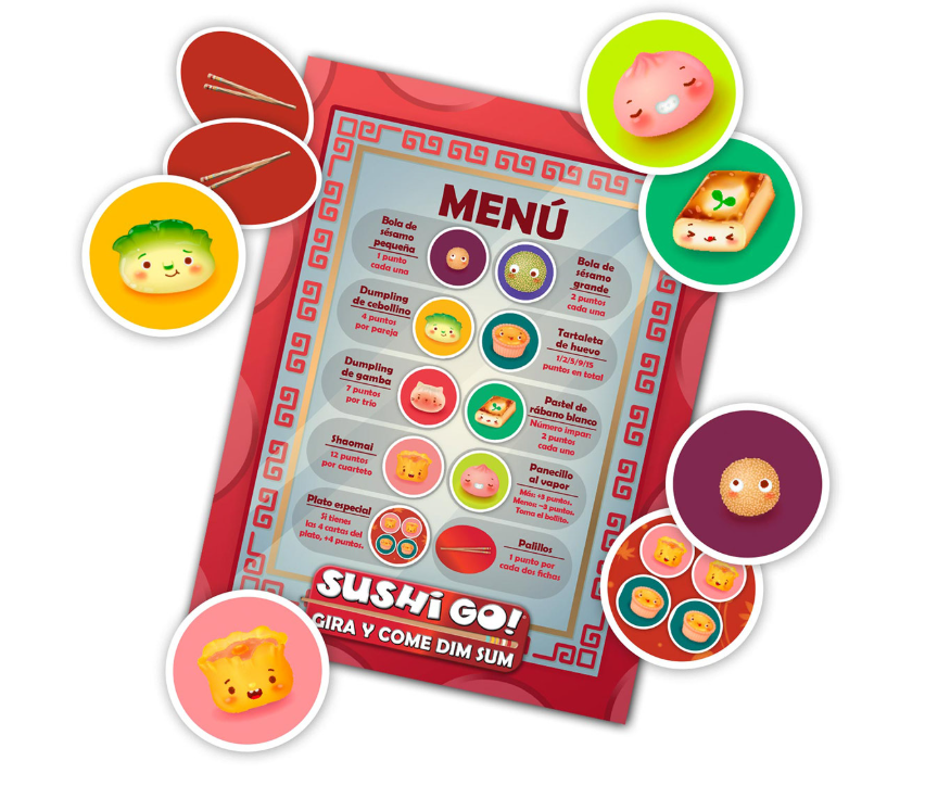 ¡Bienvenidos al restaurante, comensales! Tomad asiento alrededor de esta magnífica mesa giratoria y preparaos para probar los mejores bocados de la cocina oriental. Sushi Go! Gira y come dim sum es un juego completamente independiente del universo Sushi Go, que comparte estética y algunas mecánicas con el clásico juego de cartas. No hace falta tener, conocer o haber probado el juego original para disfrutar de este título.