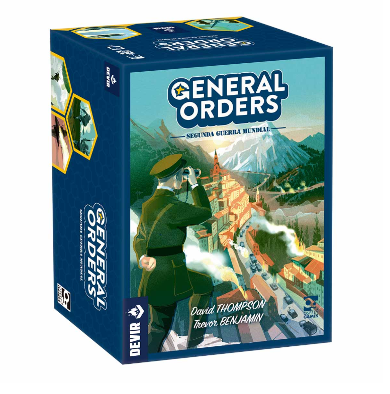 General Orders: Segunda Guerra Mundial es un juego de mesa para dos jugadores, a partir de 14 años, con partidas de unos 30 minutos, donde dos comandantes se enfrentan por el control del cuartel general enemigo. A través de una mecánica de colocación de trabajadores, los jugadores dan órdenes estratégicas como avanzar, bombardear, reforzar tropas o planificar movimientos, buscando el equilibrio entre atacar, defender y mantener líneas de suministro.