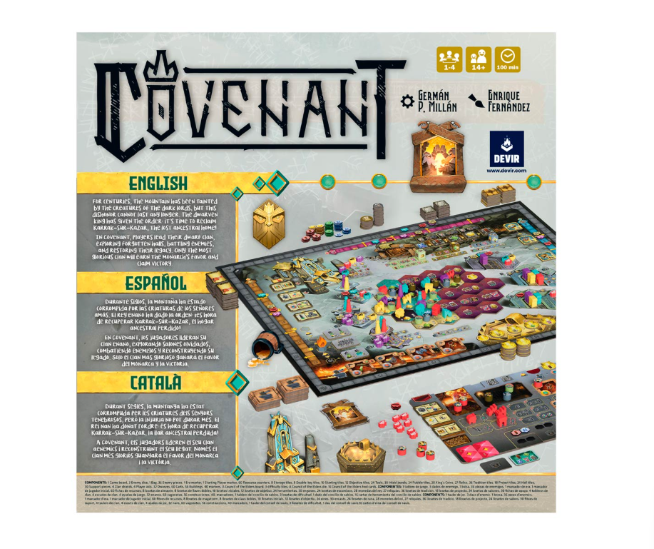 Las fichas de enano y las herramientas permitirán a los jugadores hacer todo tipo de acciones: excavar la montaña, derrotar a los enemigos que moran en ella y construir todo tipo de edificios que traerán de nuevo la luz a los antiguos salones. Cuando los jugadores hayan resuelto sus turnos de clan se reunirán en concilio, momento en el que recuperarán a sus enanos, obtendrán ventajas y puntos de gloria por diversos aspectos del juego. ¿Logrará tu clan restaurar la gloria perdida de los enanos?