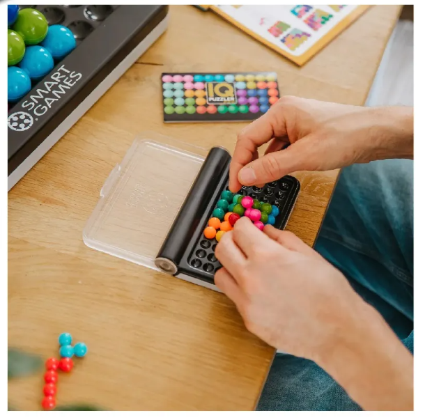 ¡Mantené tu cerebro en forma! Con IQ Los Juegos de Smart Games. ¡Hacé que todas las piezas del rompecabezas 3D encajen en el tablero de juego de tal manera que se convierta en una imagen (plana) 2D!