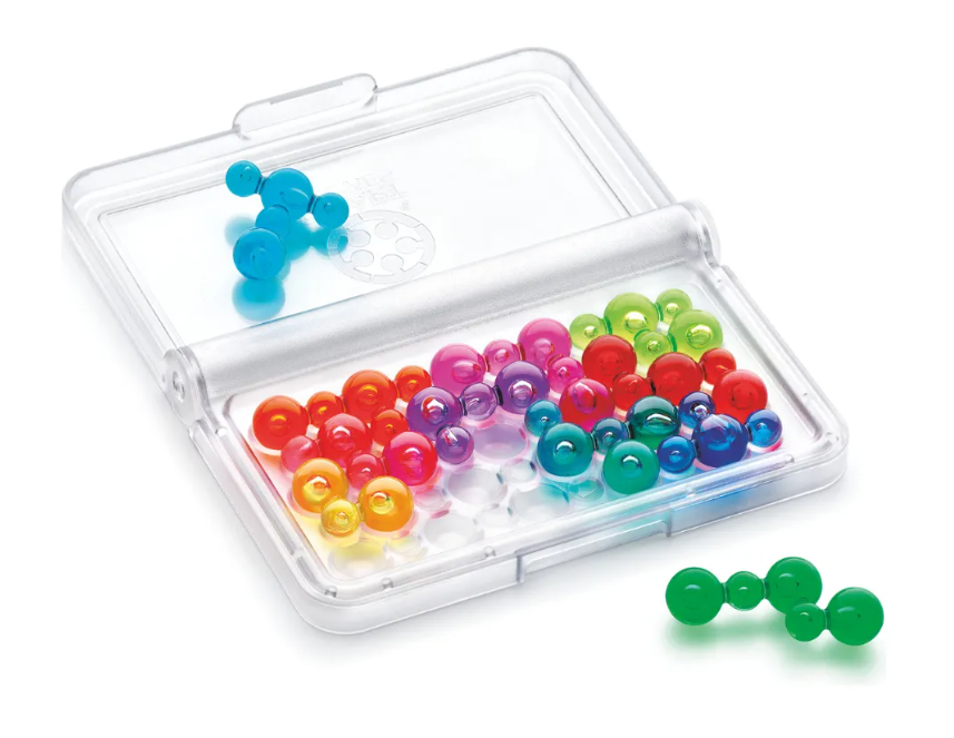 Con IQ Los Juegos de Smart Games. ¡Hacé que todas las piezas del rompecabezas 3D encajen en el tablero de juego de tal manera que se convierta en una imagen (plana) 2D! Una de las caras que sobresalen de cada pieza del rompecabezas tiene 1 bolita, y la otra cara tiene 2 bolitas. Por eso, dependiendo de cómo orientes la pieza, vas a obtener más o menos bolitas. Cuando esté resuelto, todas las piezas van a entrar en el tablero de juego sin que quede ningún agujero sin tapar.