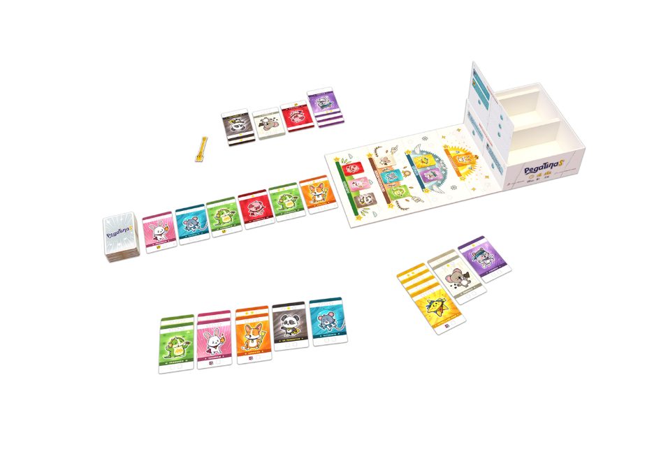 Lo que hace único a Pegatinas es su carácter evolutivo: después de cada partida se abren sobres que añaden nuevas reglas, componentes y pegatinas que personalizan las cartas y modifican el campeonato. Así, el juego cambia y se transforma constantemente según las decisiones de los jugadores, convirtiéndose en una experiencia distinta en cada sesión.