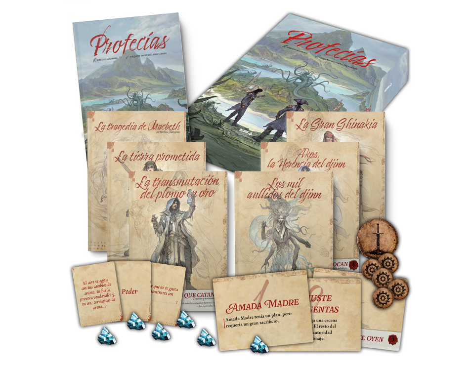 Profecías te ofrece un conjunto de reglas y consejos con los que vivir nuevas historias como El círculo de los sentidos, la campaña en cinco partes incluida en esta caja o redescubrir obras tan conocidas como La tragedia de Macbeth, de William Shakespeare; así como opciones para crear tus propias profecías.